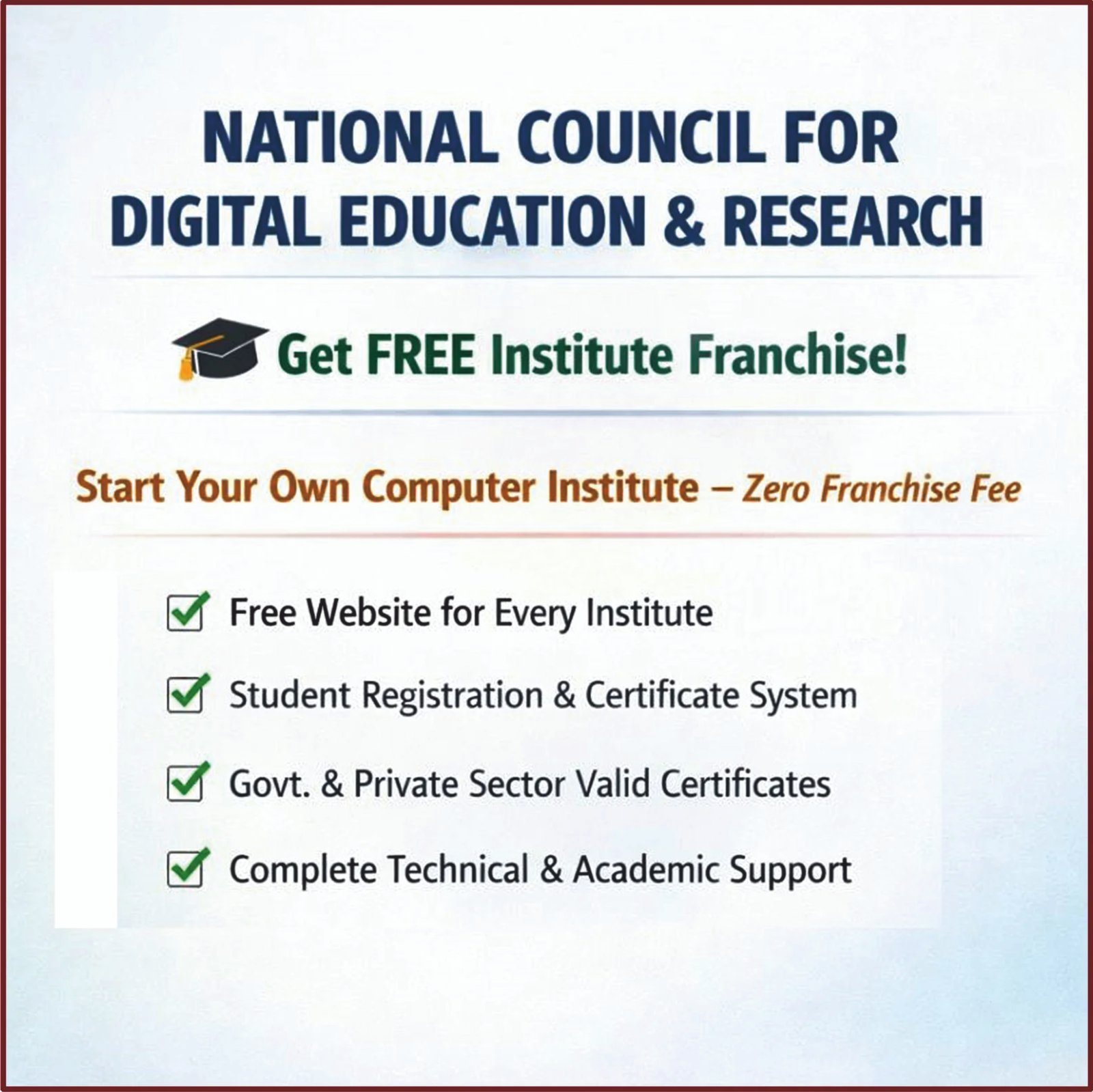 No setup cost. No hidden fees. Just real tools to build your institute’s future.